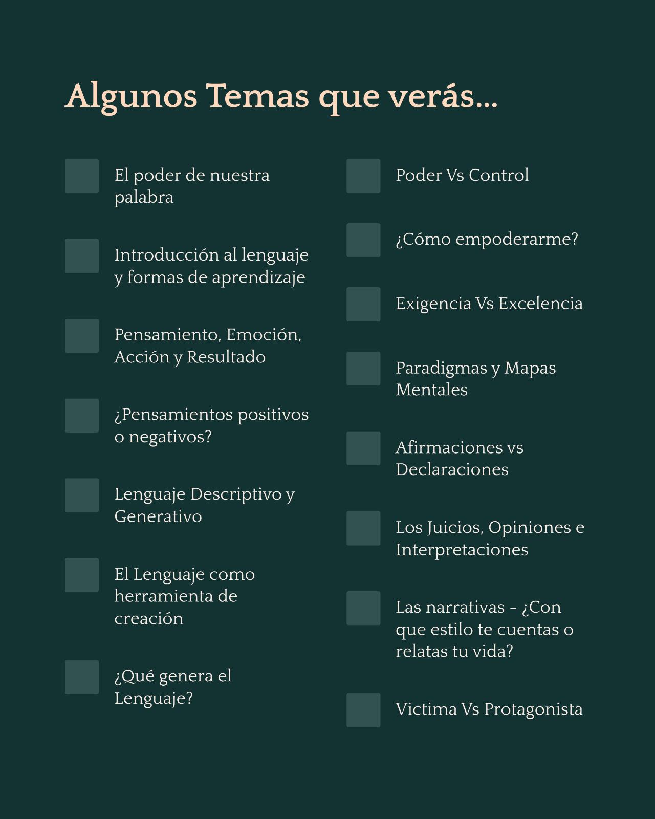 NO! NINGUNA! Este curso es para todos, no importa si no sabes nada de Coaching Ontológico o de Ontología del Lenguaje.